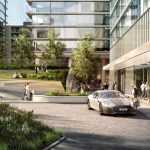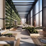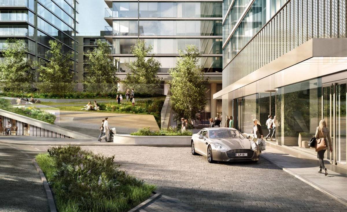 also extend established public spaces to promote animation at the waterside. This includes a café, planting and a new sloping rooftop garden named Pinnacle Park.